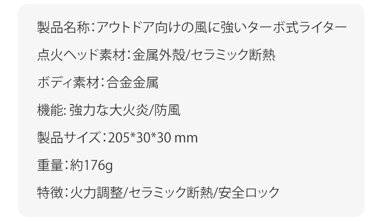 アウトドア向けの風に強いターボ式ライター